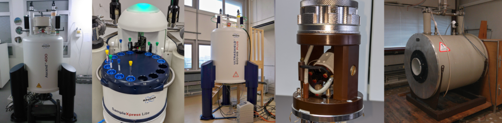 La plateforme est équipée de six appareils : 5 sont utilisés pour la RMN en solution (dont un 400MHz situé à Metz), deux pour la RMN en phase solide, et un pour l’imagerie. Les 3 appareils à 400MHz utilisés pour la RMN des solutions sont équipés de passeurs automatiques d’échantillons.