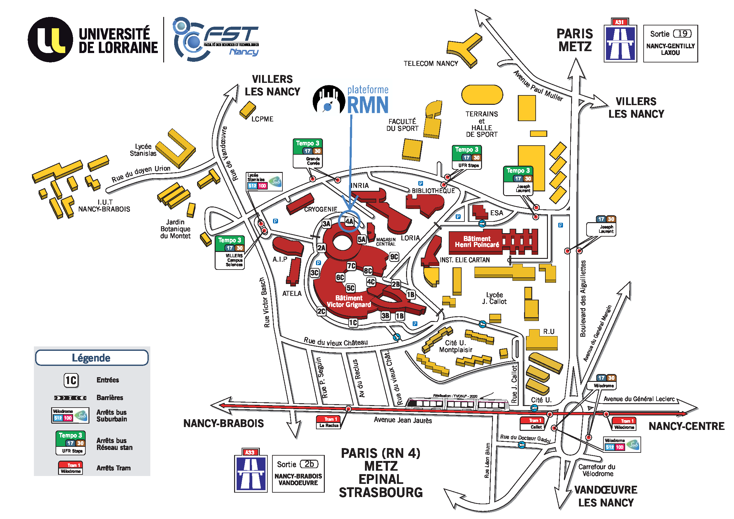 Avec l’objectif de rendre accessible l’outil de RMN à l’ensemble de la communauté scientifique et industrielle de Lorraine, la plateforme est implantée à la fois sur le site Nancéen et le site Messin. Elle est dotée de six appareils à haut champ (300-600MHz en fréquence de résonance du proton, et imageur à 100MHz).