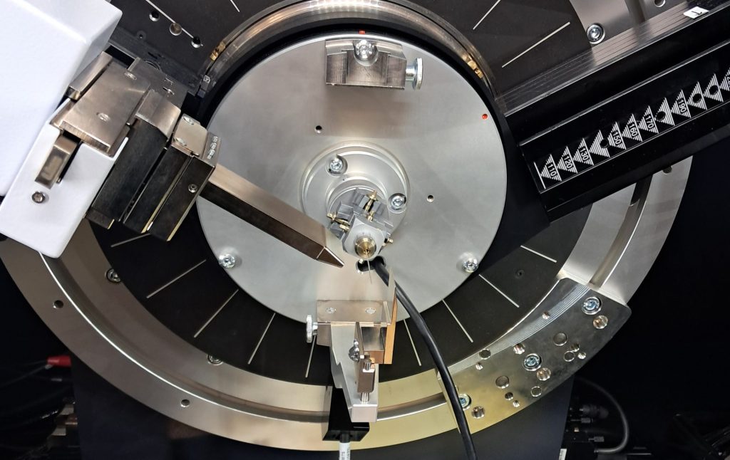 Possibilité d’installer un porte capillaire rotatif afin d’effectuer des mesures en transmission sur des capillaires ainsi que des mesure permettant l’analyse par fonction de distribution de paires (pair distribution function – pdf).