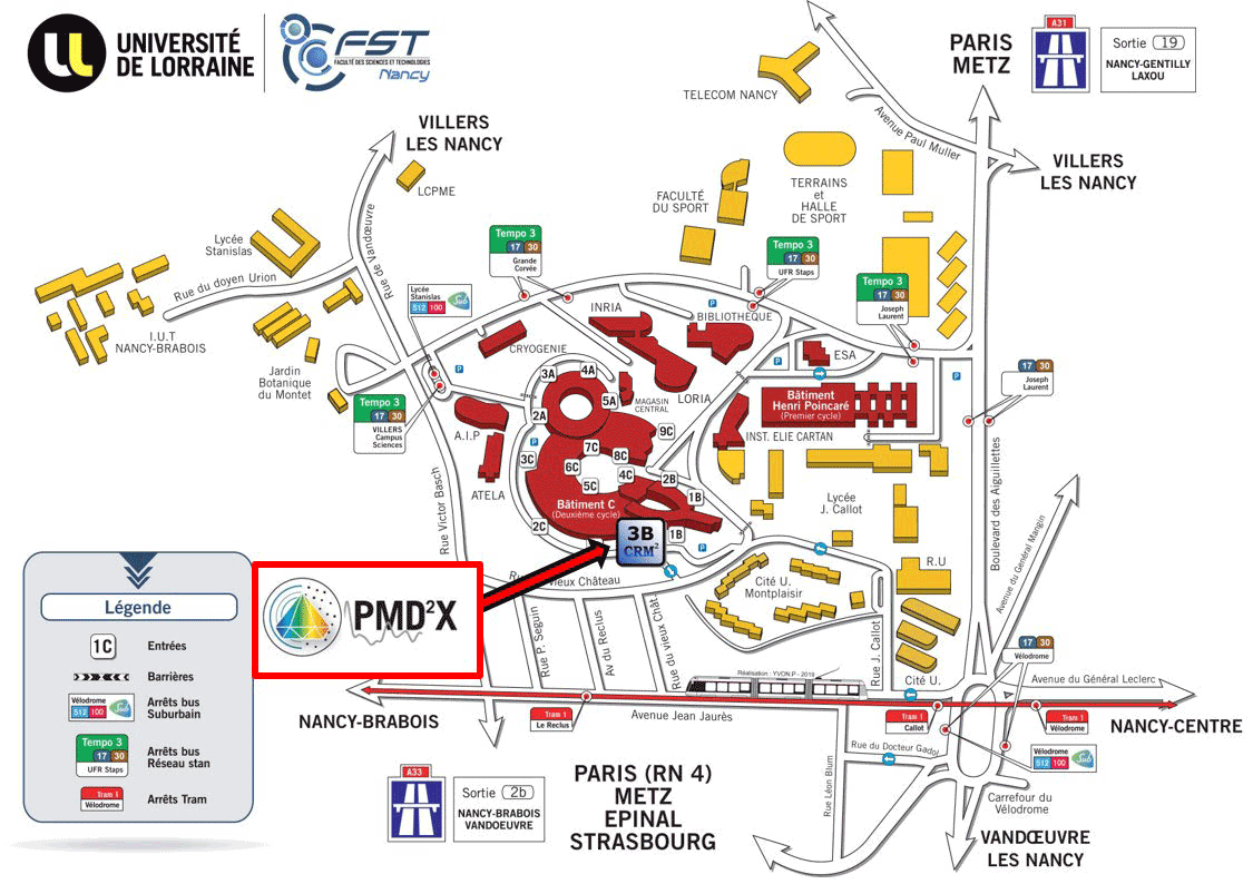 PMD2X : Plan d’Accès Accès par l’entrée 3B Diffractomètres : niveau 2 Bureaux : niveaux 3 & 4 Coordonnées GPS: 48.664635° N,6.160906° E Bâtiment B Entrée 3B Publié le 21/05/2023 à 9h59