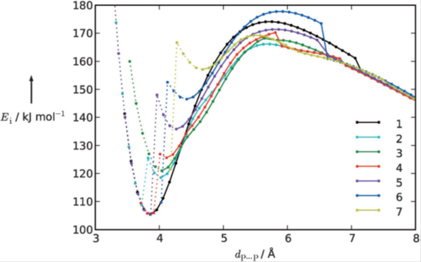 Studies on the relative molecular orientations in the crystalline space and their interaction intensities.