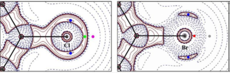 Charge Density Analysis and Topological Properties of Hal3‑Synthons and Their Comparison with Competing Hydrogen Bonds. Brezgunova et al., Cryst. Growth & Design, 12 (2012), 5337-5386.
