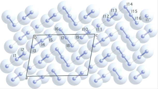 Stabilization of polyiodide chains via anion⋯anion interactions: experiment and theory. Lamberts et al., CrystEngComm, 18 (2016), 3832–3841.